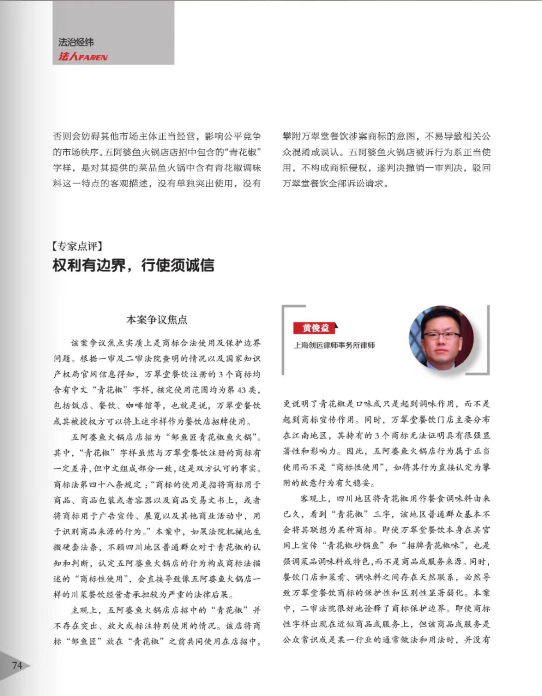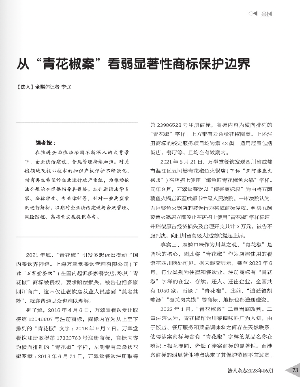 汕尾辉知简讯 | 辉知队黄俊益律师应“法治日报”旗下杂志邀请,就“青花椒”案发表专家点评