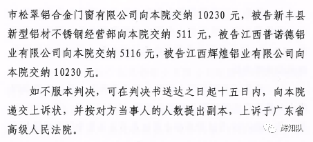 汕尾凤铝系列维权案:诉辉煌公司等四被告,法院判赔250余万