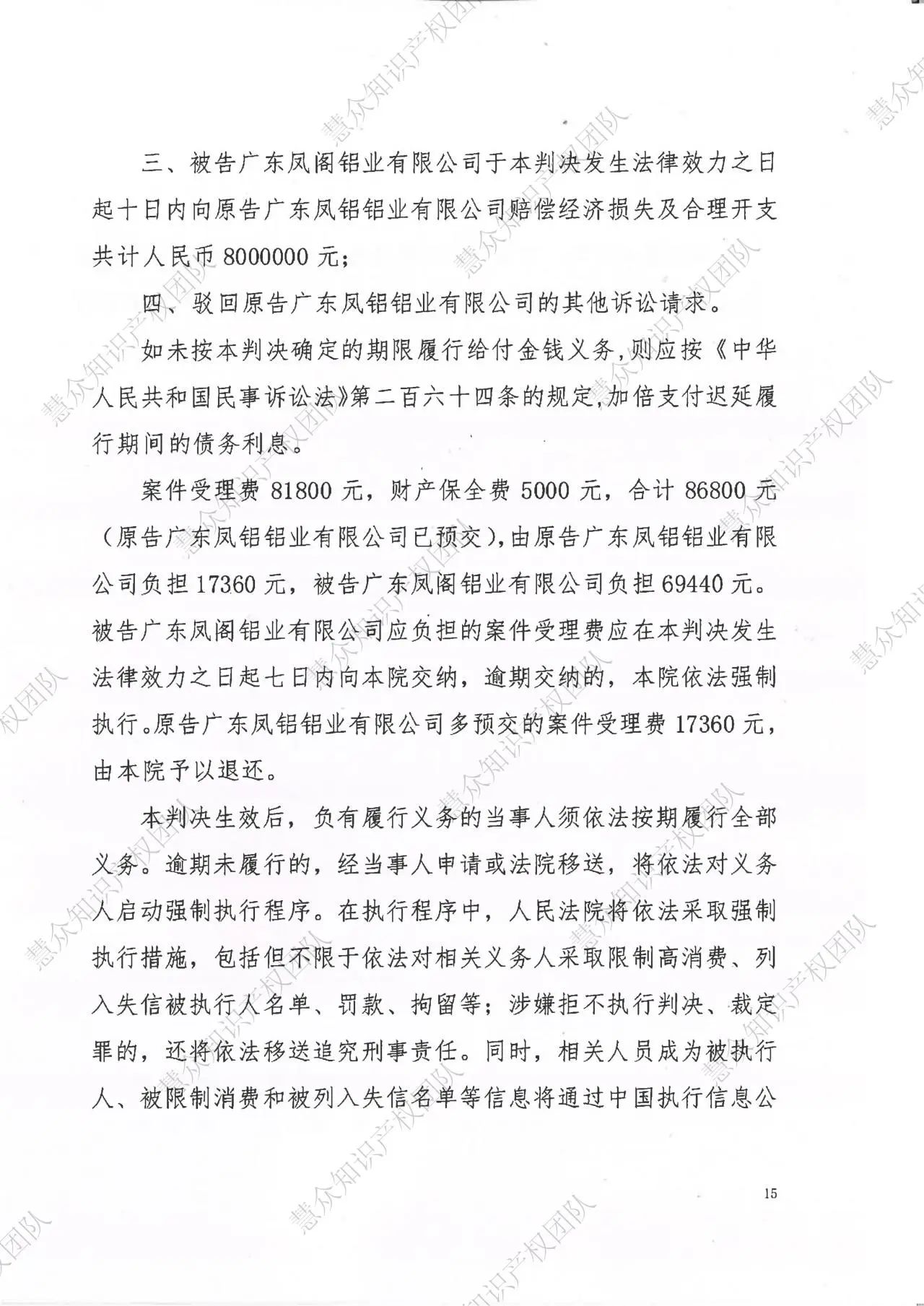 汕尾判赔800万!辉知队代理“凤铝”商标维权案胜诉